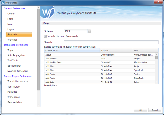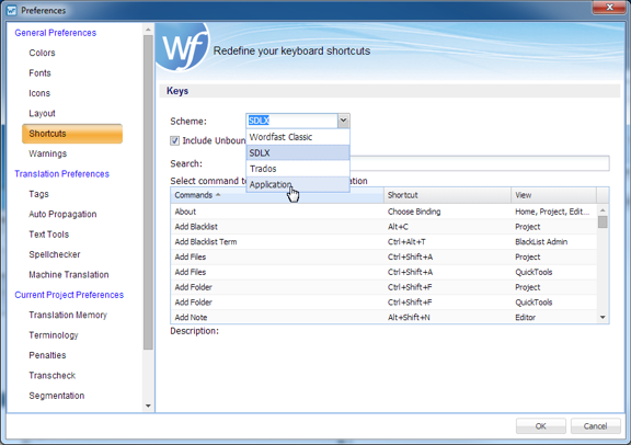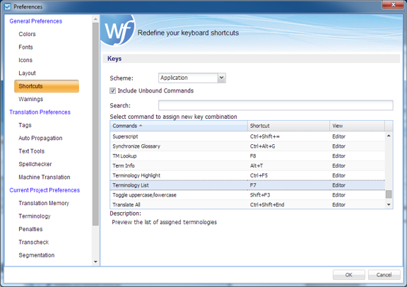 Figure 4. Preferences—Shortcuts (Terminology List)