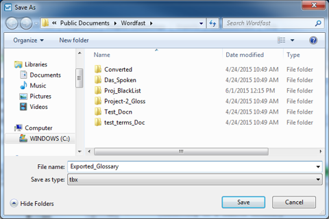 Local and remote glossaries can be exported, with the exception of Term Manager glossaries. To export a glossary: