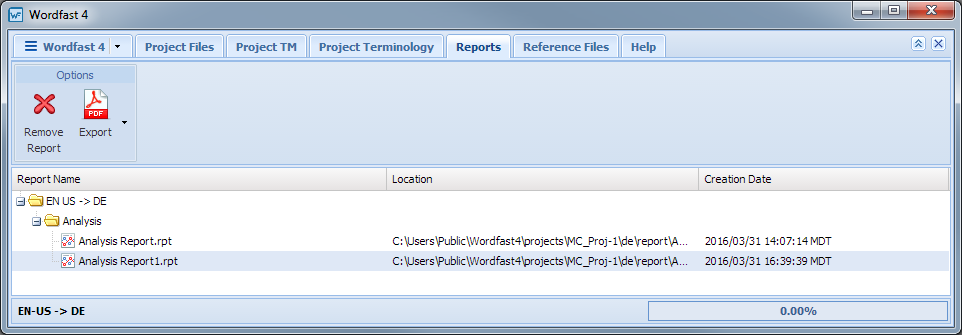The Reports tab appears.