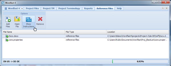 The instructions file list appears. If there are no instructions, No instructions appears.