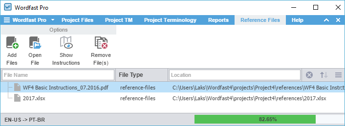 You can include reference files in a project to provide context. Typical reference files are additional instructions, illustrations, workflow diagrams, certifications, or any file that might aid translators and reviewers. Reference files remain untranslated.