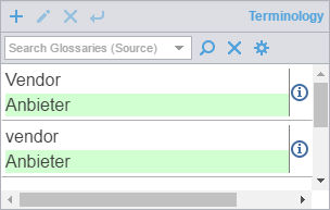 An alternative is to click the preferred target term from the Terminology pane. This also copies the term to the cursor location in the target segment.