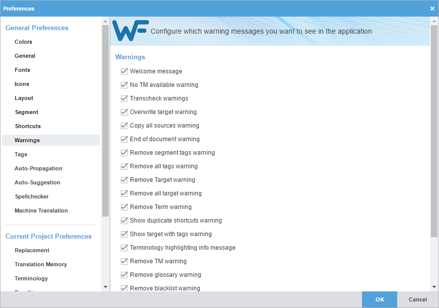 Warnings preferences control the type of warning notifications you receive.