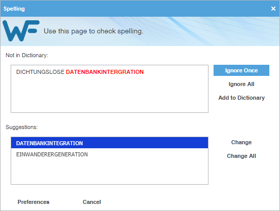 3. To view spell checking preferences, click Preferences or click Cancel to reject any changes.