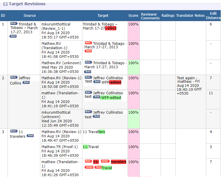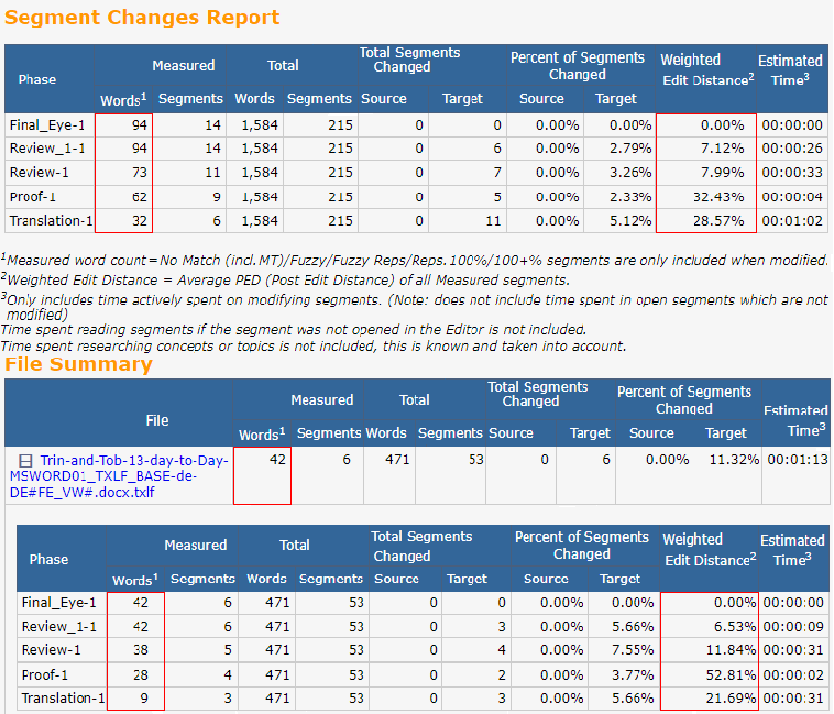 Post Edit Distance—Compares new target content to prior target content and determines how different they are, down to character additions and deletions.