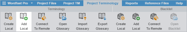 On the Project Terminology tab, click Add Local in the Terminology group.