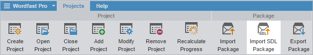 Using the Import SDL Package option, an SDL Package file can be imported into Wordfast Pro. When an SDL Package file is imported, the source files are converted to the Wordfast Pro compatible format. The translation memories, glossaries and reference file cannot be imported into the project.