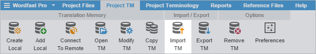 Imports the TM into an available TM file, based on selection from the drop-down list.
