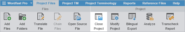 1. Click Close Project on the Project Files tab.