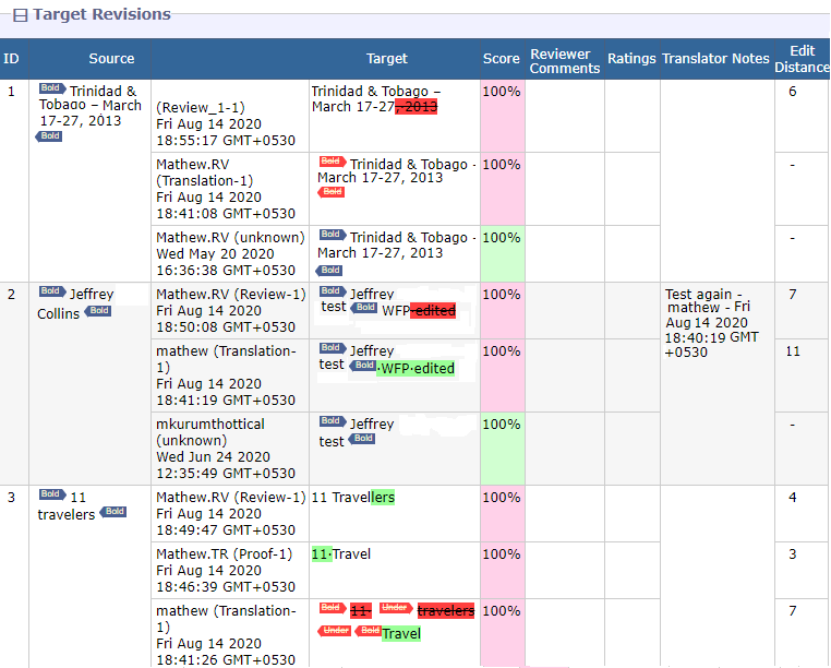 Post Edit Distance—Compares new target content to prior target content and determines how different they are, down to character additions and deletions.