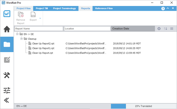 Use the Reports tab to open and to export auto-generated analysis and cleanup reports to .CSV, .HTML, .XLS, and .PDF formats.