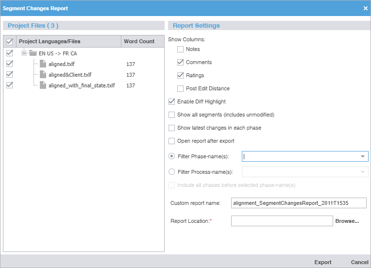 Browse and select the file location for saving the segment changes report.