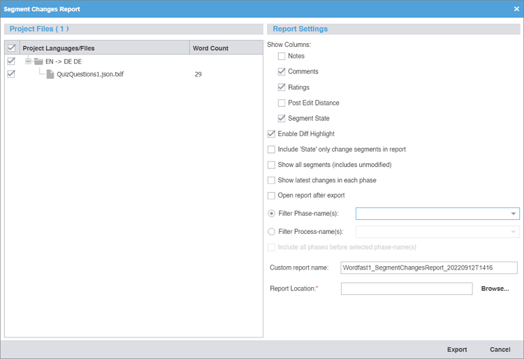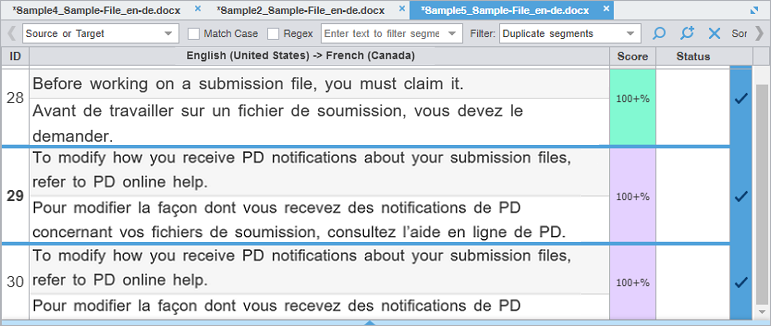 Segment filtering — Filters segments based on terms, regular expressions, match scores, notes, and other attributes.