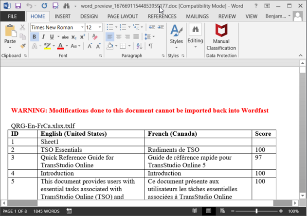 | Alert: An unlicensed version of Wordfast Pro working in Demo mode is limited.