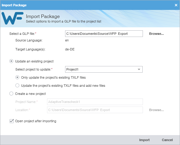 Export and import translation packages — Allows configuration and export of translation packages for fast, seamless translation management.