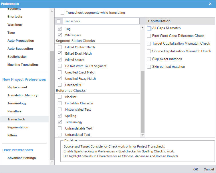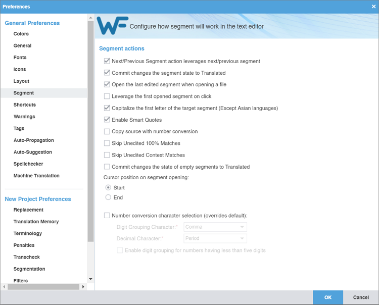 If a segment does not require any changes, for example, if the 99% match or the MT match is linguistically correct, you can change the Translation Memory settings in Preferences to add these items to the TM. To change the TM settings: