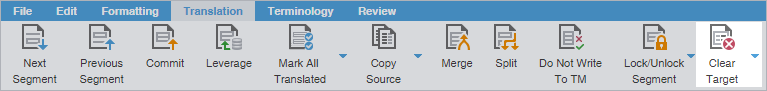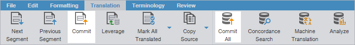 To update a TM after you finish translating or editing a segment in TXLF Editor view, you must commit it to the TM. Committing a segment will turn the color highlight from pink to purple. You can commit a segment to the TM as follows:
