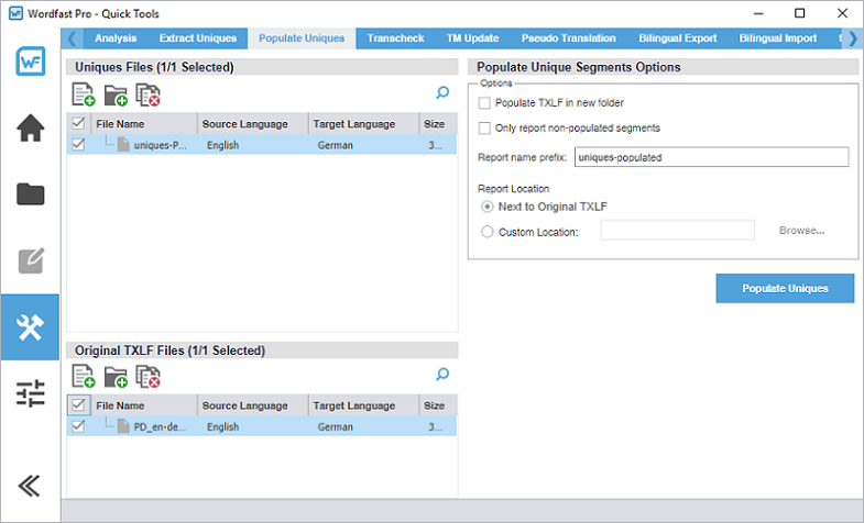 Wordfast Pro allows users to coordinate and automate the translation and review process through an intuitive, stand-alone user interface.