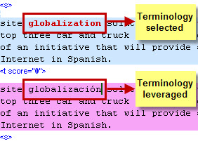 In the target segment, place the cursor at the location where you want the translated term to appear.