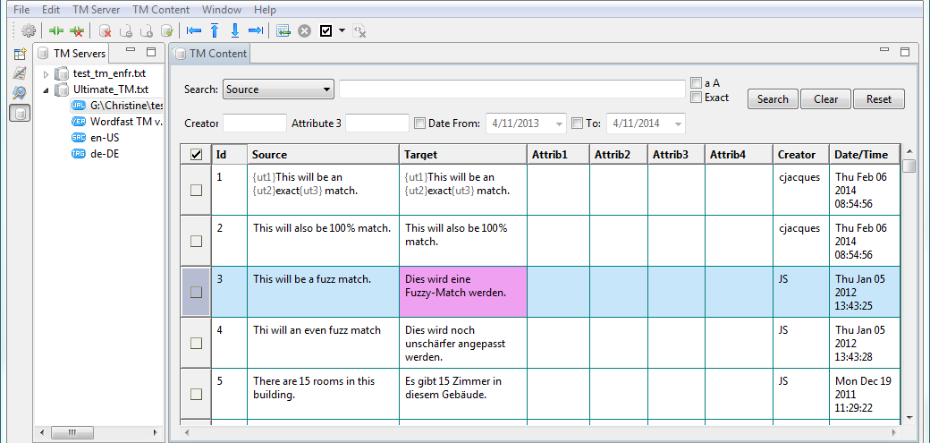 Using TM Administration perspective, users can view, edit and update both local and remote translation memories. Find below the procedures for the following tasks: